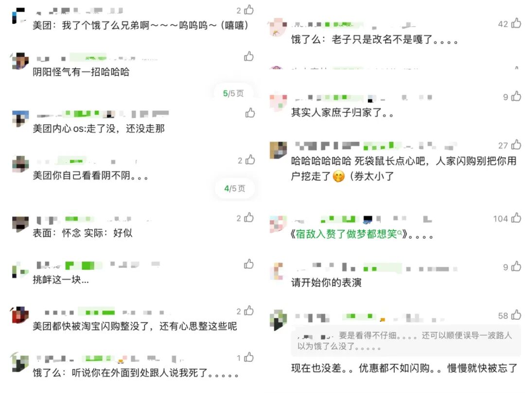 11月14日,美团在App首页上线“致敬蓝朋友”活动,称要送1000万朵表白“花”(兑换券)给用户。正值饿了么更名之际,美团此举像是给饿了么办“告别仪式”,但饿了么更名“淘宝闪购”是品牌升级,淘宝“大消费平台”战略也更具体了。不少用户对此感到奇怪,社交媒体上有很多类似“饿了么:我只是改名不是嘎了......”的评论。