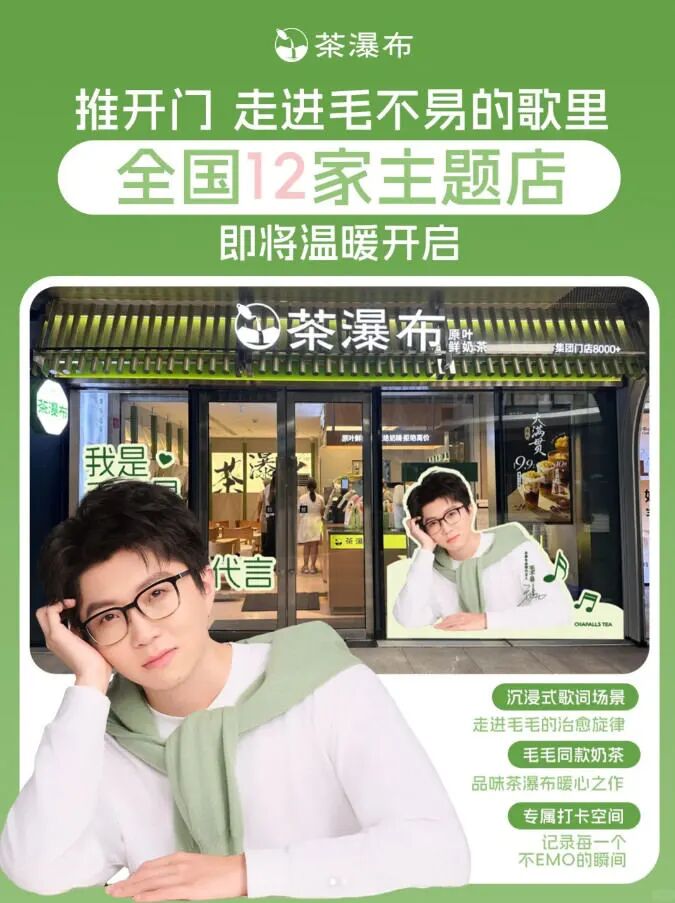 茶瀑布与毛不易合作的这波明星联名主题店迅速引发了网友的热议。尤其是那些主题店未覆盖城市的网友纷纷在线表达期待,“我在武汉很想你”“我在青岛很想你”“不来广州,我要闹了”……