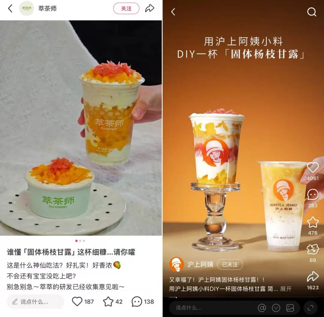“固体杨枝甘露爆火印证了杨枝甘露的顾客基础,大家对传统杨枝甘露已经审美疲劳,需要创新形式赋予它新鲜感,满足猎奇心理、又不会踩雷。”范承宇总结。