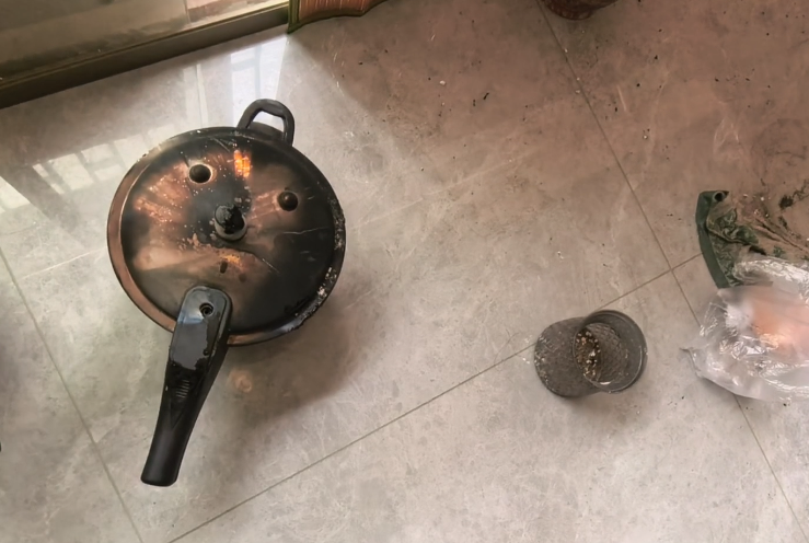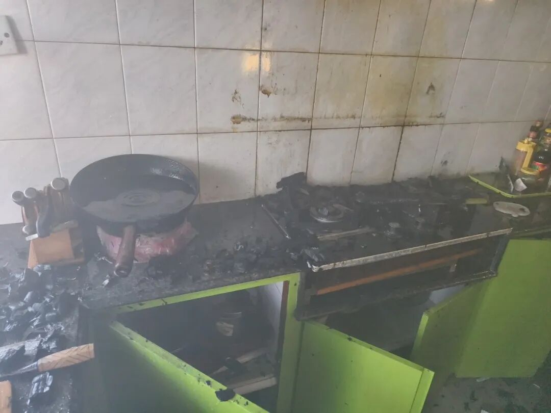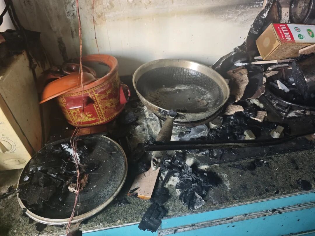 消防员到场时,锅内食物已烧成焦炭,厨房一片狼藉。