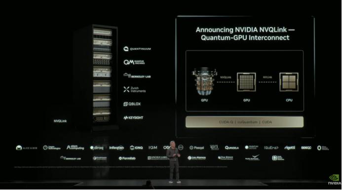 10月的GTC大会上,黄仁勋手持NVQ Link互连架构演示图,再次预言:GPU用30年改变世界,量子计算或许无需这么久。