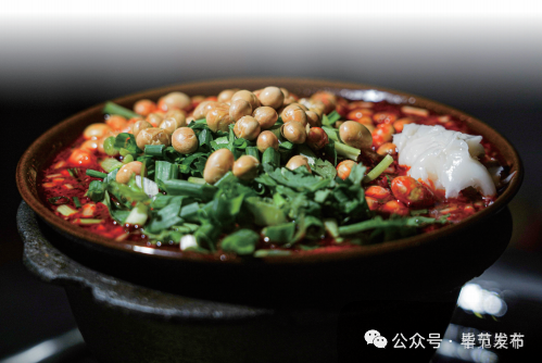 豆米火锅,以毕节特产的花豆为主料,用骨头汤慢熬至豆米软糯、汤汁浓稠。豆米火锅的口味有清汤、酸辣、麻辣等,可搭配猪蹄、排骨、肉圆子、土豆片、藕片等荤素食材,再搭配加了豆腐乳的煳辣椒蘸水,是令人称绝的“下饭神器”。
