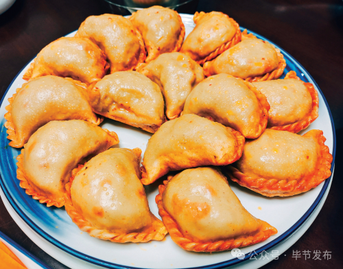 威宁小粑粑,集荞麦、火腿、豆腐、腌菜、贡菜等当地特产于一身,外皮酥香焦脆,咬一口,馅料咸香,汁水在嘴中暗流涌动。