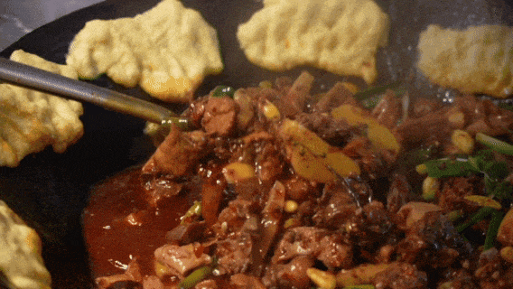 毕节烙锅,《乌蒙深处》中主角们也在吃,它可是毕节宵夜的top1。各种荤素食材放在锅里半煎半炸,滋滋冒油,香而不干,越吃越热闹,越吃越上头。