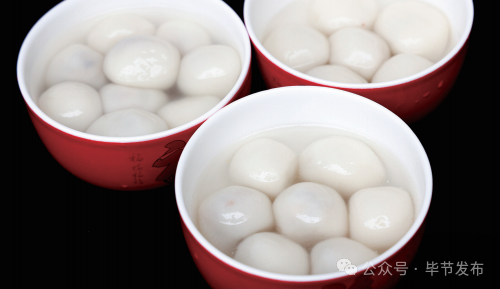 毕节汤圆,软糯爽滑,甜而不腻。用核桃仁、白糖、花生、猪油等做馅的传统“富油汤圆”最为经典,口感绵软、层次丰富,是毕节特有的汤圆口味。