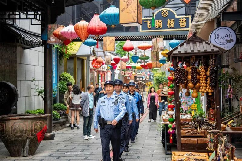 民警联合义警在热门商圈开展巡逻。其中,合心援心理咨询专业义警队成立至今已开展服务8000人次;警律联动义警队已覆盖城区所有派出所,协助开展调解工作、为群众提供法律问题解答、为基层所队提供专业法律知识帮助等;琥珀青葵医护义警队共有66名拥有高级职称的医疗专家以及450余名医学生,助力开展义诊、安全宣传等活动。