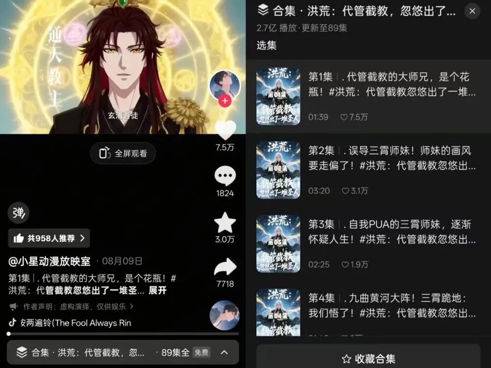 比如@狗哥杰克苏、@天神馆主叶墨、@我的狐仙女帝等曾坐拥千万粉丝的账号,后来都陆续停更,淡出大众视野。“在我看来,现在更新的AI漫剧和早期的动画番账号没有本质上的区别,都是一分钟左右的动画内容,只是AI漫剧的成本更低。”