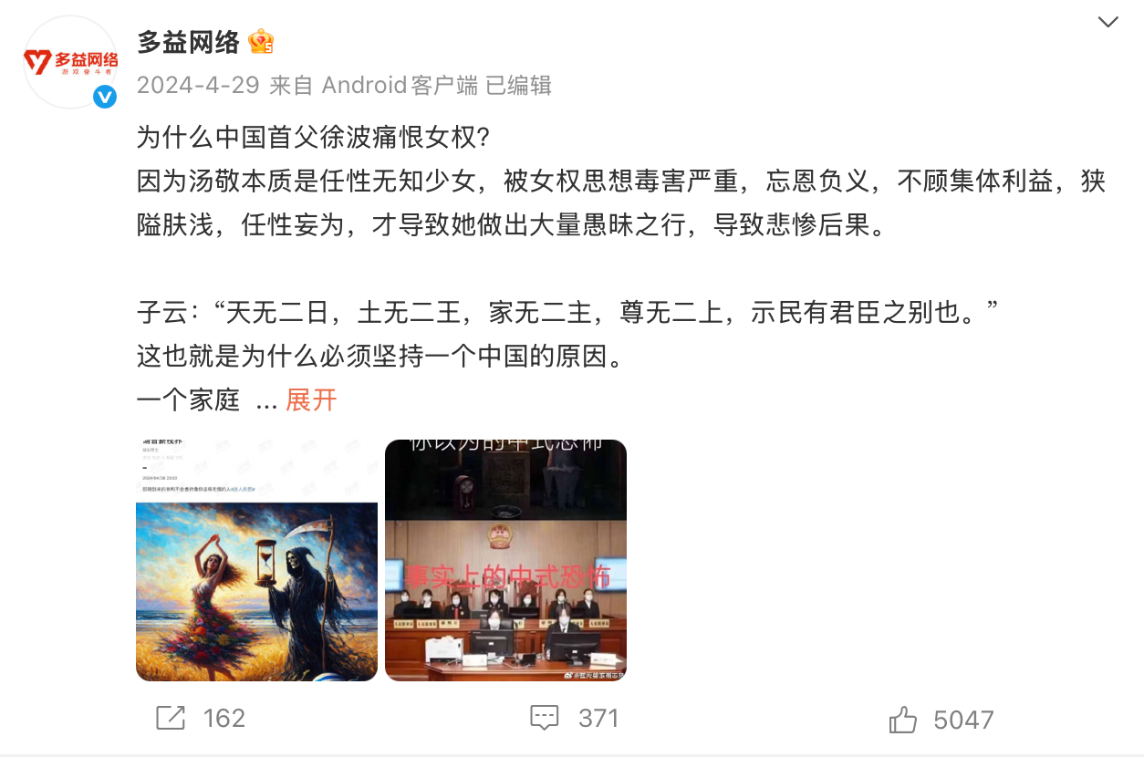 2024年4月,规定员工娶妻彩礼不得超10万,否则全公司通报批评并严惩。这些政策让多益网络多次上热搜。