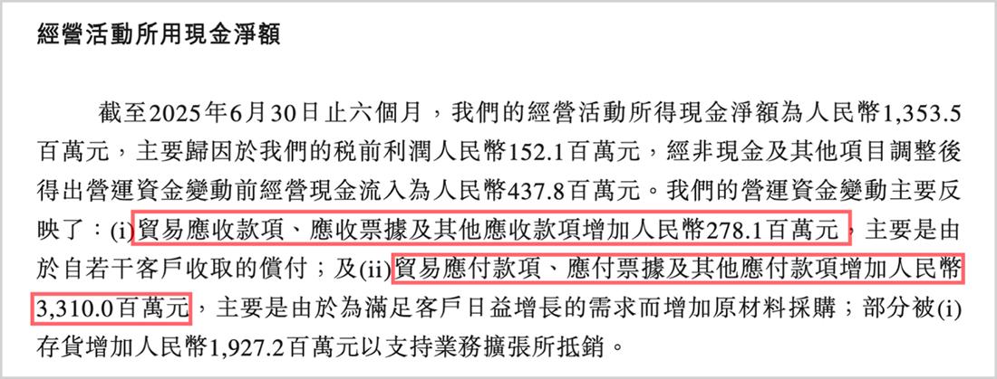 今年上半年,海辰储能经营现金流转正为13.53亿元,但这主要是因为大幅提升应付账款,增加了33.1亿元,而同期应收款项仅增加2.78亿元。