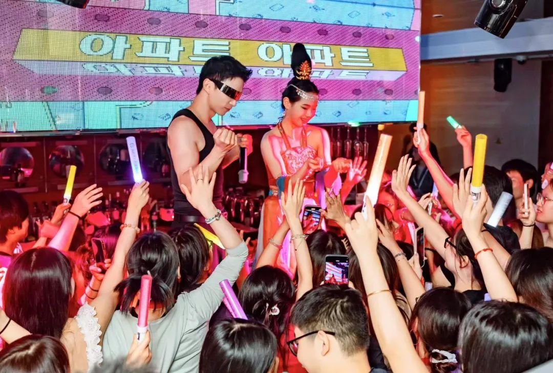 流量带来的商业价值,让这类模式迅速蔓延。西安特色火锅店里,猛男服务员赤膊系围裙服务;杭州国风烧鸟酒馆中,古风女舞者做出大尺度互动;香飘飘门店里,“男团服务生”以爱豆式营业与顾客合影……连海底捞也加快布局,上半年已在深圳、北京等多个城市落地近30家夜宵主题店。