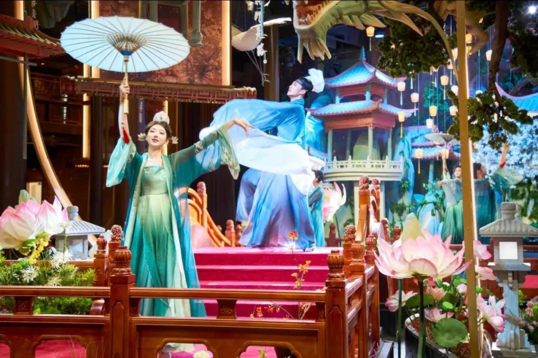 在“擦边” 营销引发争议、品牌形象受损的当下,一股富含文化底蕴的“表演饭”风潮正席卷餐饮行业。从北京 “宴外宴” 的《红楼遗梦》沉浸式餐秀、“宫宴”等国风主题餐厅,到上海“叙宴”的连锁化布局,再到商场里的开心麻花主题戏剧餐厅,甚至街头巷尾“鸡排哥”的网感叫卖,“表演饭” 已突破高端与场景局限,呈现多元化、下沉化趋势。