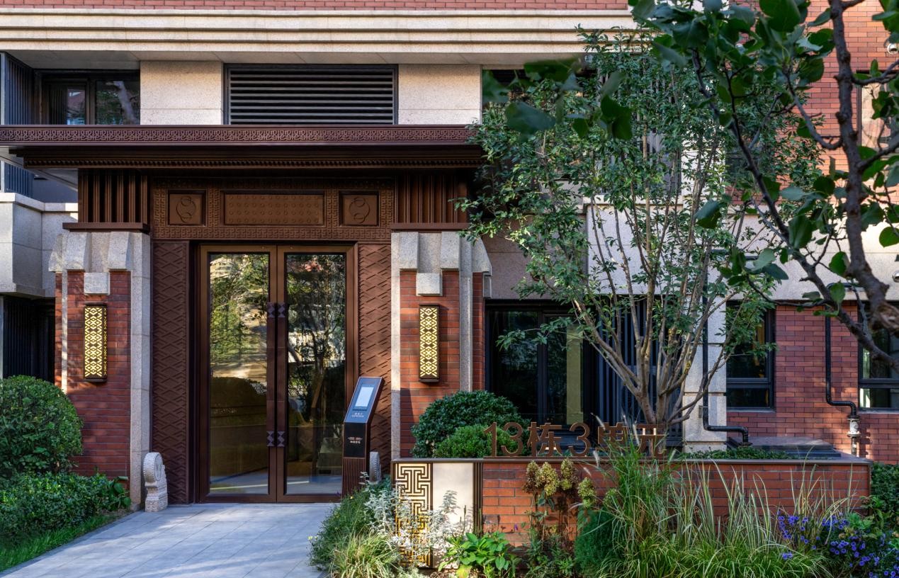 栖海澐颂的交付,被业内视为“颂系”产品系的又一高分之作。交付现场,建筑立面绛栗色与米黄色石材相得益彰,沉稳温润。中央景观轴线绿意葱茏,光影在红砖与园林间流动,营造出低调、克制且极具质感的空间氛围。