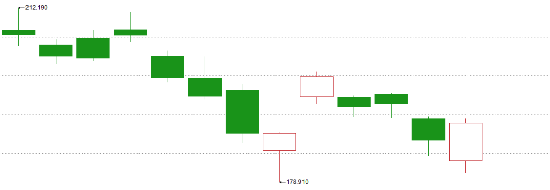 在二级市场上,英伟达股价在10月29日达到212.19美元/股的高点后,本月持续下跌,盘中最低跌至178.91美元/股,区间跌幅达15.68%。