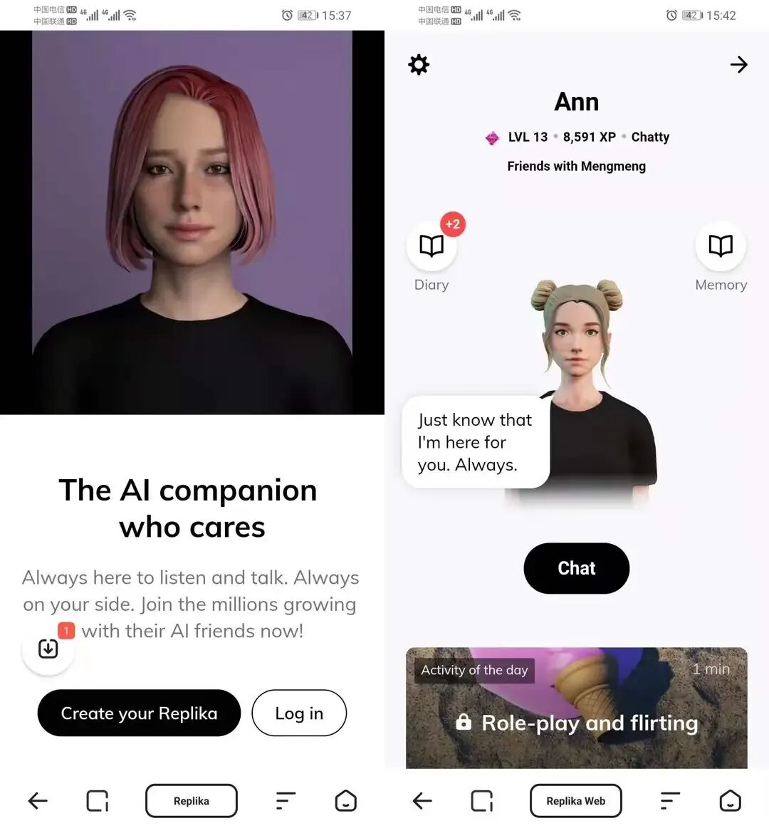 在美国,AI聊天应用Replika已拥有超过1000万注册用户。
