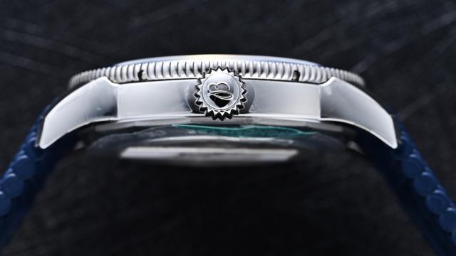 优秀的机芯造就了合适的表壳尺寸。搭载 B31 机芯的全新超级海洋文化系列有 40 毫米、42 毫米和 44 毫米三种表径,厚度都控制在 12 毫米以下。40 毫米版本厚度仅 11.73 毫米,比 B20 时代动辄 14 毫米以上的厚度舒适很多。40 毫米表径首次出现在该系列中是一大惊喜,个人认为 40 毫米是潜水表最完美的尺寸,从当年的水鬼和如今限量版的经典 50 噚就能得到证明。