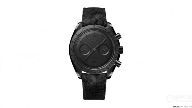 腕表点评:欧米茄这款全新超霸系列“月之暗面”腕表“墨黑”款,堪称全黑腕表的典范!表头整体采用黑色陶瓷制作,表壳直径 44.25 毫米,厚度 15.09 毫米,防水 50 米。陶瓷表盘虽看似“纯黑”,但功能指示完备,3 点位有 60 分钟及 12 小时计时盘(有两个计时指针),9 点位是小秒盘,日历显示在 6 点位。指针和时标都做了黑化处理,还覆有黑色 Super-LumiNova 夜光涂层,在黑暗中会散发绿色光芒。此外,陶瓷表圈上的黑色测速刻度由大明火珐琅制成,尽显低调奢华。不仅正面全黑,背面也延续了黑色风格,欧米茄 9900 自动上链至臻天文台机芯经过特殊修饰,摆陀和夹板都做了哑光黑化处理,镌刻的文字也是用黑色亮漆打造,该机芯能为腕表提供 60 小时动力。腕表搭配黑色尼龙表带(也有黑色橡胶表带可选),将全黑风格贯彻到底!