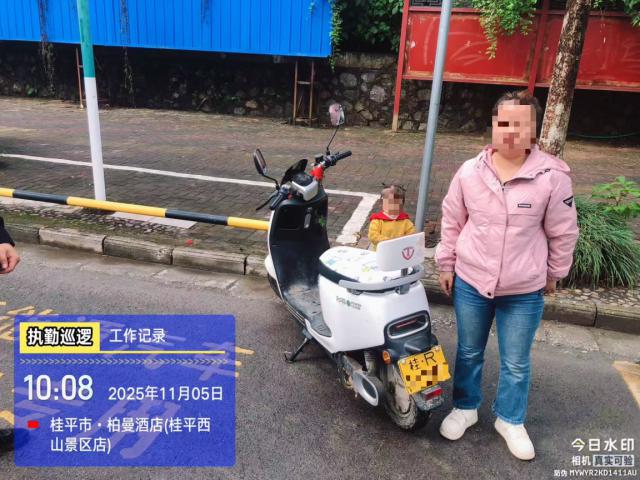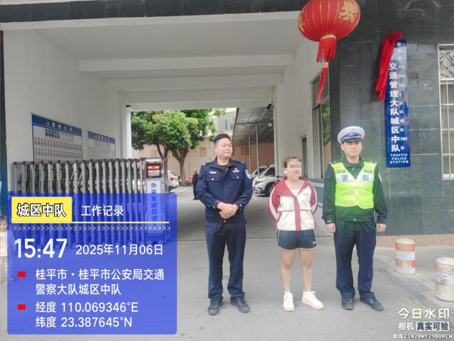 11月5日,桂平市公安局交通警察大队城区中队在辖区西山路粤桂花城路口开展冬季道路交通违法整治时,发现一名女子驾驶电动车未按规定佩戴安全头盔,民警随即上前示意其停车接受例行检查。
