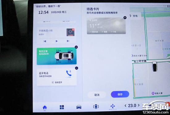 客观来讲,系统界面美观度一般,不够精致,但整体风格简约清爽。桌面以导航地图为主,左侧是卡片栏,长按可进入设置界面。在待选卡片一栏,用户可按系统提示点击新增、删除或长按拖拽排序。