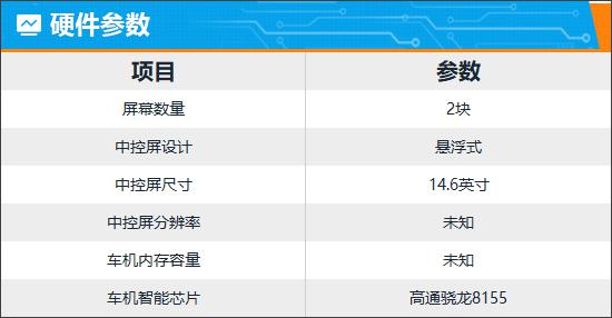 评测车的硬件配置较为常规。14.6英寸悬浮式中控屏显示清晰,内置高通骁龙8155芯片,操作流畅,实测中未出现卡顿。全液晶仪表尺寸为10.25英寸,界面简约清爽,能显示丰富的行车信息。