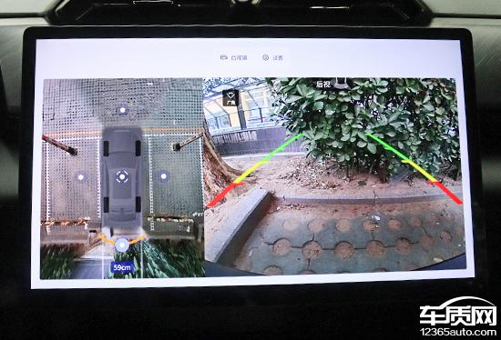 评测车配备360°全景影像和透明底盘/540°影像,支持多角度显示。实测影像画面清晰,畸变控制良好,还带有随动倒车辅助线。不过,液晶仪表屏幕内虽能显示驻车雷达,但无距离提示,有待优化。