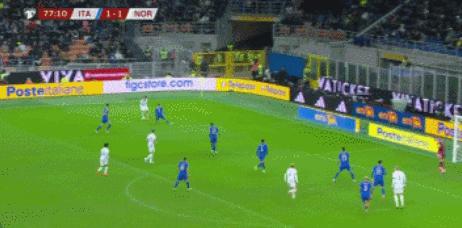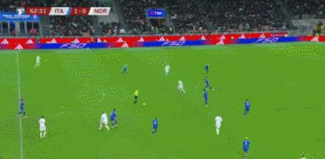 尽管领先优势明显,挪威并未全力防守,依旧派出瑟尔洛特、哈兰德的双中锋组合。然而开场后,其防线持续受到意大利进攻的冲击。
