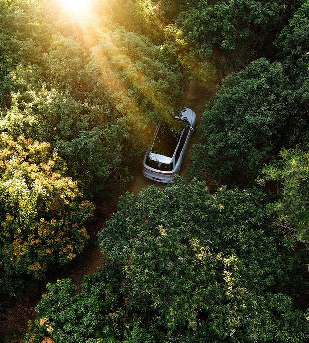 整车宛如被山风精心雕琢的艺术品,宽阔而厚重,在光影交错间展现出东方美学独有的柔润与气韵。