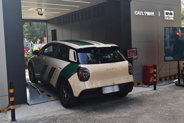图丨埃安UT super正在宁德时代巧克力换电站进行换电,用时90秒左右