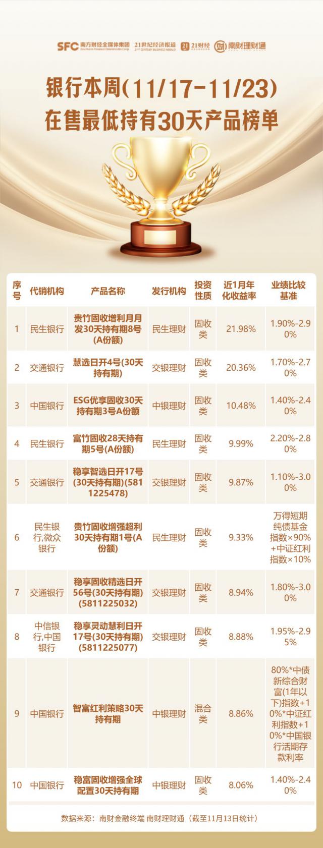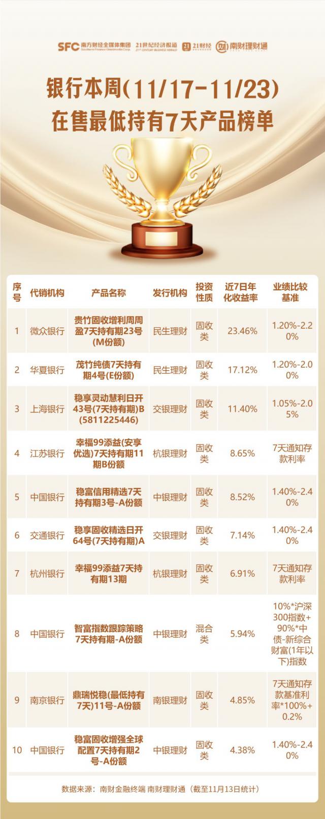 最低持有期榜单揭晓!互联网银行7天持有期代销产品收益居首