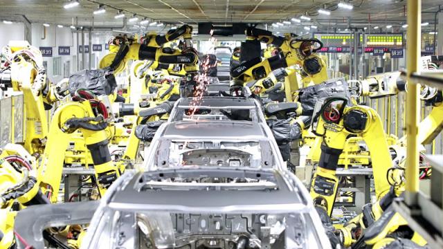 盐城工厂冲压车间有2条5400吨全自动冲压生产线,每分钟可达15冲次;焊装车间采用100%自动化焊接工艺,每50秒钟就能下线一部焊装好的白车身;涂装车间使用机器人涂胶,采用工艺难度大但环保的“水性漆”;总装车间采用柔性生产线,适用于多种车型共用生产,配备确保高品质、最大化适用模块部品以及拧紧保证系统,构建了从“毫米级精度”到“零缺陷交付”的全链路智造体系。
