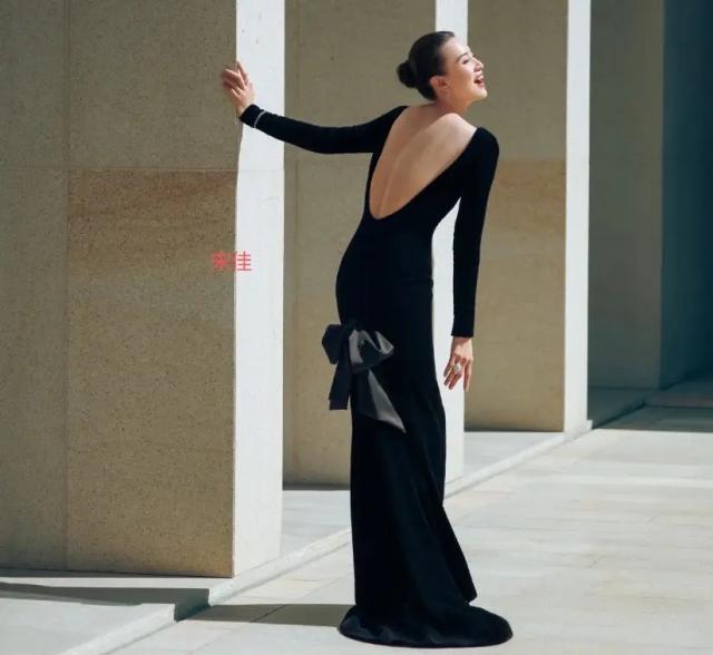 45岁的宋佳身材依旧绝美。这件黑色裹身裙采用大露背设计,大方地露出背部线条,完美的体型令人羡慕。