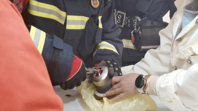 消防员先将洗菜池从凹槽中取出,方便进行后续操作。随后使用钳子将洗菜池下水槽小心剪开,期间不断安抚受伤女子的紧张情绪。最终经过精细操作,女子的手指成功取出。
