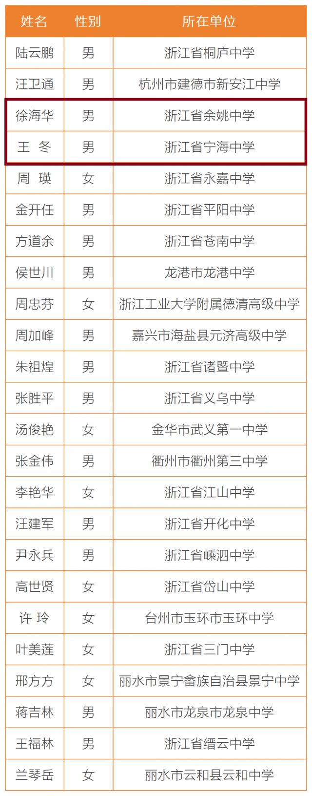 名单揭晓,宁波这2位老师获祝贺