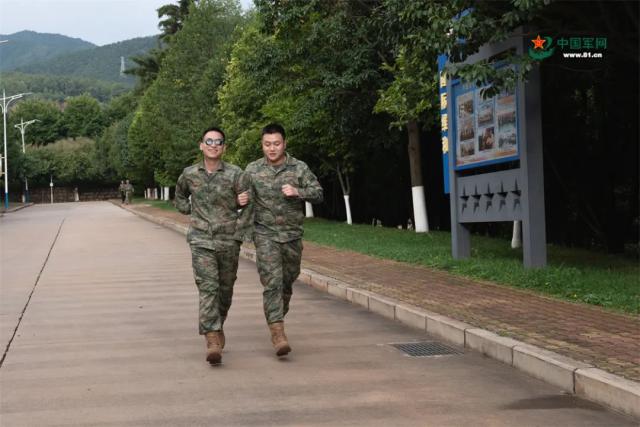 △杜富国在战友陪伴下奔跑