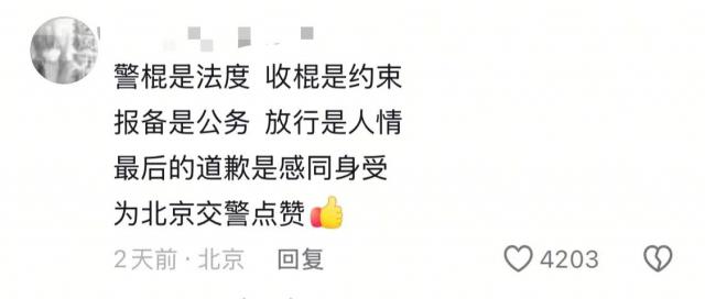 这段经历被宋先生摩托车上的行车记录仪完整记录下来。事后,他将视频发布到短视频平台,迅速引发众多媒体和网友关注。网友评论:“其实他早就想哭了,一路上憋了一路了,被交警拦下来有人说话了,瞬间就忍不住了”“警棍是法度,收棍是约束,报备是公务,放行是人情,最后的道歉是感同身受,为北京交警点赞!”