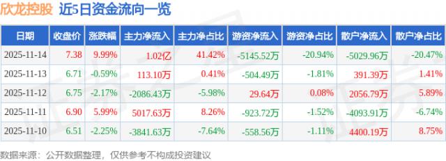 近5日资金流向一览见下表: