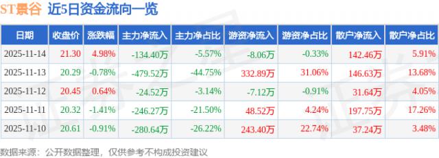 11月14日资金流向数据显示,主力资金净流出134.4万元,占总成交额的5.57%;游资资金净流出8.06万元,占总成交额的0.33%;散户资金净流入142.46万元,占总成交额的5.91%。