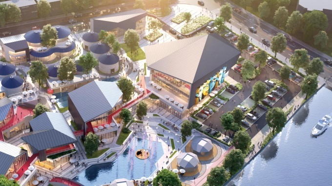 此外,旭辉商业结合当下年轻人对户外、亲水的喜好,提出了将粮仓与周围水系相融合的整体公共空间提升方案,不仅丰富了项目的空间层次和商业可能性,还为城市打造了一个灵动的休闲文化场所。