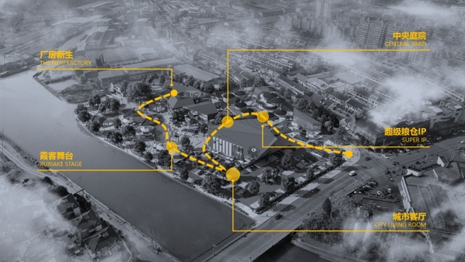 除了室内空间的焕新,项目还充分利用水系资源,利用水塘景观打造乐园化的体验空间,并设置水上舞台,未来通过主题节庆、艺术展览、户外嘉年华等活动,将历史空间转变为一个集文化展示、公共活动和休闲体验于一体的复合场所。
