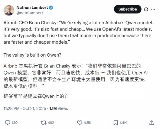 他们创造了“Qwen Panic”这个词,意思是Qwen又便宜又开源好用,而美国的闭源模型贵,开源的又打不过千问,压力巨大。