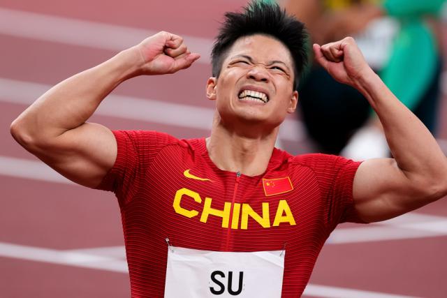 东京奥运会男子100米半决赛,苏炳添以9秒83的成绩打破亚洲纪录(视觉中国)
