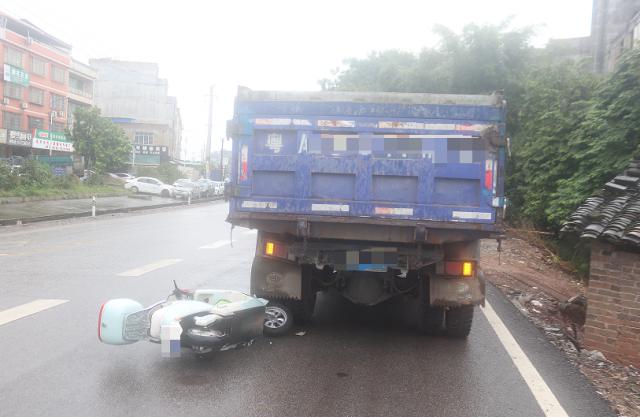2025年9月28日,在桂平市社步镇白石路口,李某某手持雨伞、单手操控电动车行驶。由于雨伞遮挡视线,他未能及时发现卢某某因车辆故障临时停靠在路边的轻型自卸货车,导致两车发生碰撞。此次事故造成李某某受伤,两车均有不同程度受损。