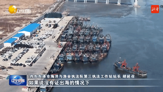 我现在在丹东东港市的渔港内,身后的渔船已准备就绪,但出发前必须跨过一道硬性门槛,即证件关。执法人员首先检查的是渔船的“身份证”。《渔业船舶检验证书》,它能证明这条船的结构设备安全合格;《渔业船舶所有权登记证书》,可证明这条船的合法身份。此外,我们还注意到执法人员重点检查了另一类证件。