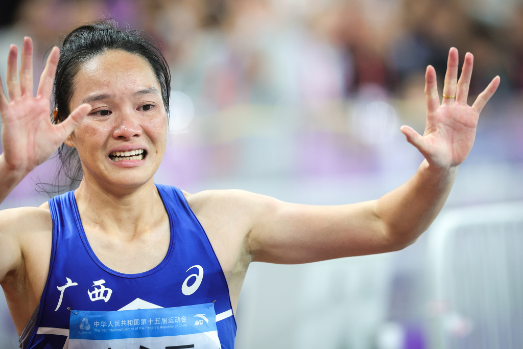 走下赛道,来到媒体记者面前,韦永丽忍不住哭了。