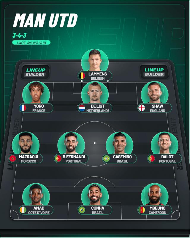 预测谢什科伤缺期间曼联首发阵容:塞纳·拉门斯 / 莱尼·约罗(马奎尔),德里赫特,卢克·肖 / 马兹拉维,布鲁诺·费尔南德斯,卡塞米罗,迪奥古·达洛(帕特里克·多古)/ 阿马德·迪亚洛,库尼亚(芒特),姆贝莫。