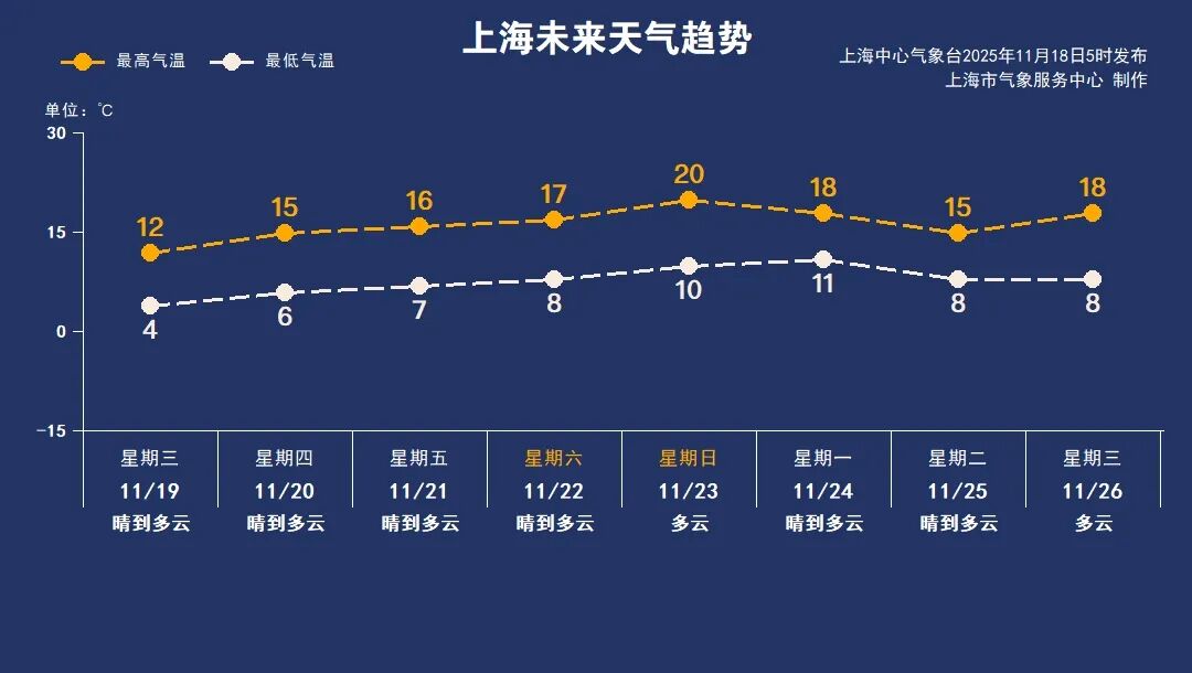 明后天受辐射降温影响,早晨气温较低,市区4 - 6℃,郊区0 - 2℃,局部有薄冰。白天天气晴好,气温稳中有升,预计周日最高气温可达20℃,秋高气爽的好天气将回归。