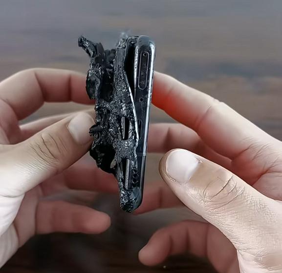 到了第二天,手机被人捡到送回时,已经被烧得面目全非,如同战损版一般。
