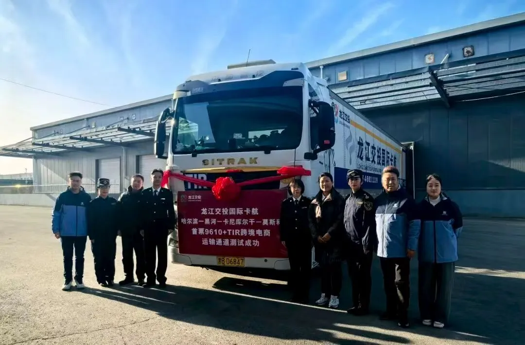 这批货物从哈尔滨启程,经黑河公路口岸出境,过境俄罗斯卡尼库尔干口岸后,最终抵达莫斯科,全程可享受“一次查验,全程无忧”的TIR证制度便利。这是TIR国际公路运输系统与“9610”跨境电商监管模式在黑河口岸的首次融合,也是“口岸 + 属地”联动创新模式的一次实践,标志着“龙江交投国际卡航”国际物流运输业务取得了实质性进展。