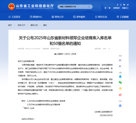 近日,山东省工业和信息化厅公布了2025年山东省新材料领军企业培育库入库名单,东港区有5家新材料企业成功入选。