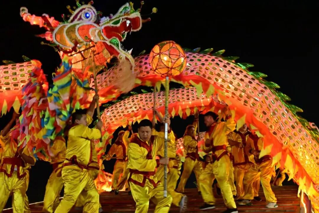 非遗表演有荷塘纱龙、醒狮争霸、龙艇竞渡,气势磅礴。