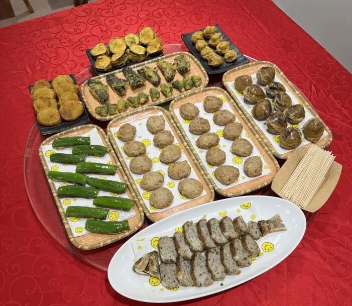 荷塘鱼饼,鲜嫩弹牙的百年手艺。区级非遗——荷塘鱼饼以鲜鲮鱼肉手打成型,外皮焦香酥脆,内里嫩滑弹牙,咬一口仿佛在舌尖跳舞,蘸点芥末酱油,就是地道荷塘味!它与酿鱩、煎酿青椒共同入选‘蓬江十大名菜’,是来荷塘必尝的美食。